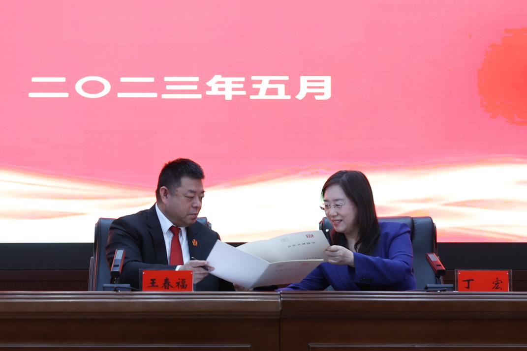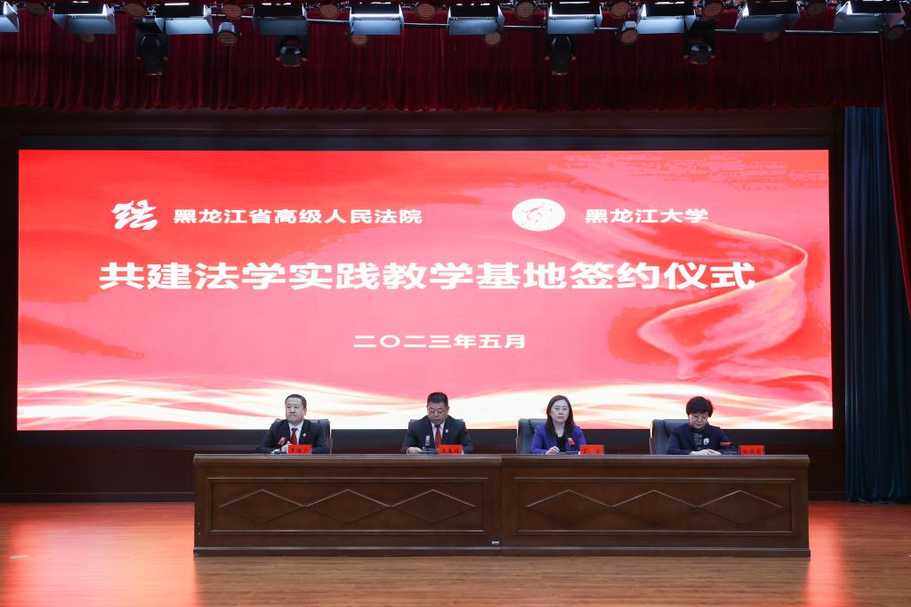 5月11日,黑龙江大学与黑龙江省高级人民法院在省高院举行共建法学实践教育基地签约仪式。黑龙江大学党委副书记丁宏与省高院党组副书记、常务副院长王春福共同签署《合作共建协议》,并共同为共建法学实践教学基地揭牌。