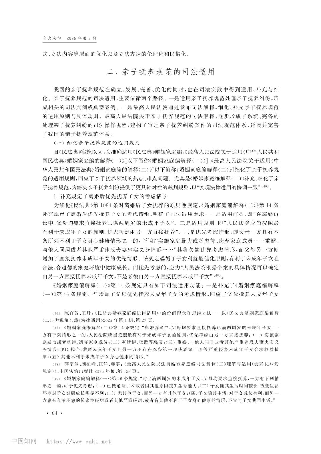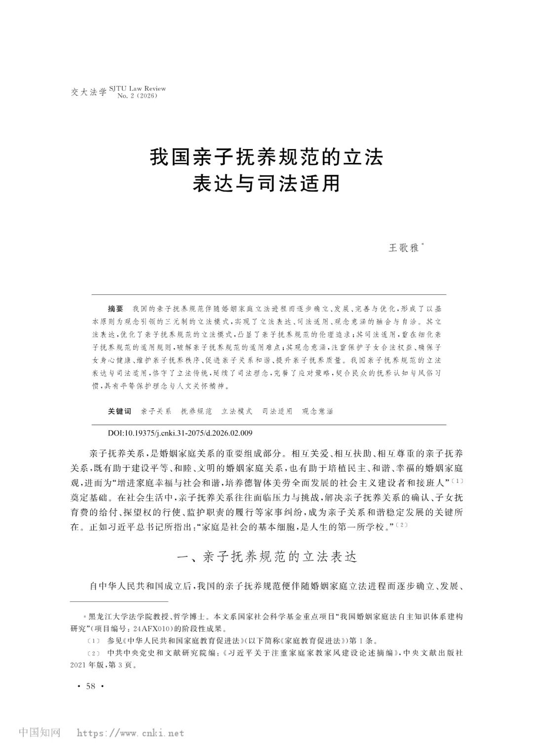 新葡京网上赌场 教师王歌雅教授撰写的论文《我国亲子抚养规范的立法表达与司法适用》被《交大法学》(2026年第2期)收录。