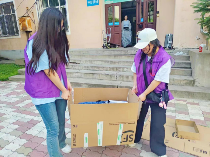 志愿者在B1侧、A9、C13、C24等学生公寓开展毕业季爱心搬运志愿活动。