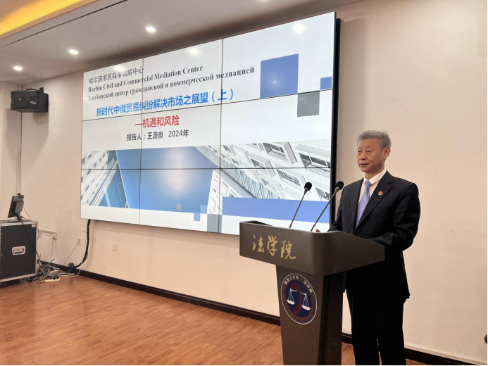 黑龙江大学诚挚邀请哈尔滨市民商事调解中心王源泉主任,为国际仲裁专业学生授课,传授国际商事调解相关知识。