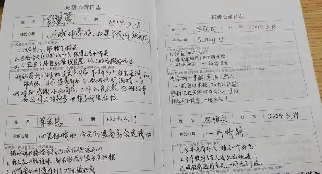 开展了班级心晴日志传递书写活动,同学们通过书写日志分享内心的喜怒哀乐,真情实感跃然纸上。不仅让同学们更深入了解彼此的内心世界,还增强了大家的情感表达和心理调适能力。同学们借此增进了理解与友谊,班级氛围更加积极健康,为大学生活增添温暖与力量。