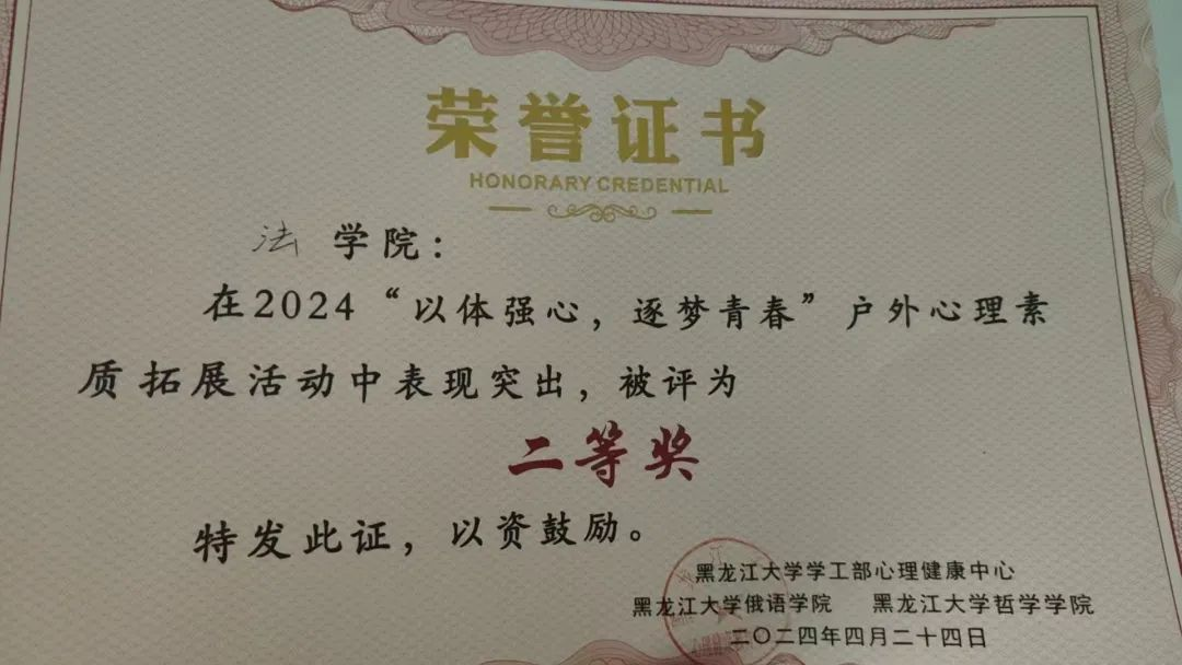 获得黑龙江大学2023-2024学年心理健康教育实践活动优秀组织奖、第十二届“演绎心世界”校园心理情景剧大赛三等奖、第四届“心沐阳光·手绘心语”心理手语操三等奖等多项荣誉。
