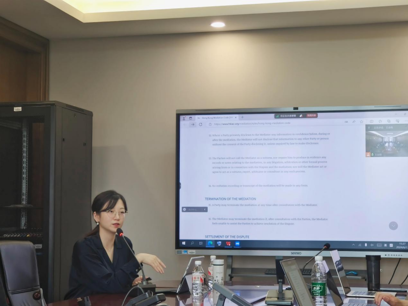 香港道宏大律师事务所的毛茅大律师为同学们阐述了国际商事调解在香港的实践状况。作为全球经贸合作中具有重要地位的城市,香港在国际商事调解制度方面的发展位居世界前列。在积极采纳《新加坡调解公约》的同时,香港也在不断优化相关立法,为国际商事调解的全程实施提供了最大程度的便利和保障。通过毛茅大律师的讲解,同学们对现行香港国际商事调解制度有了更为深刻的理解。
