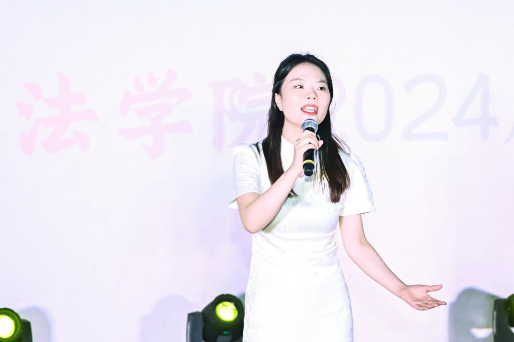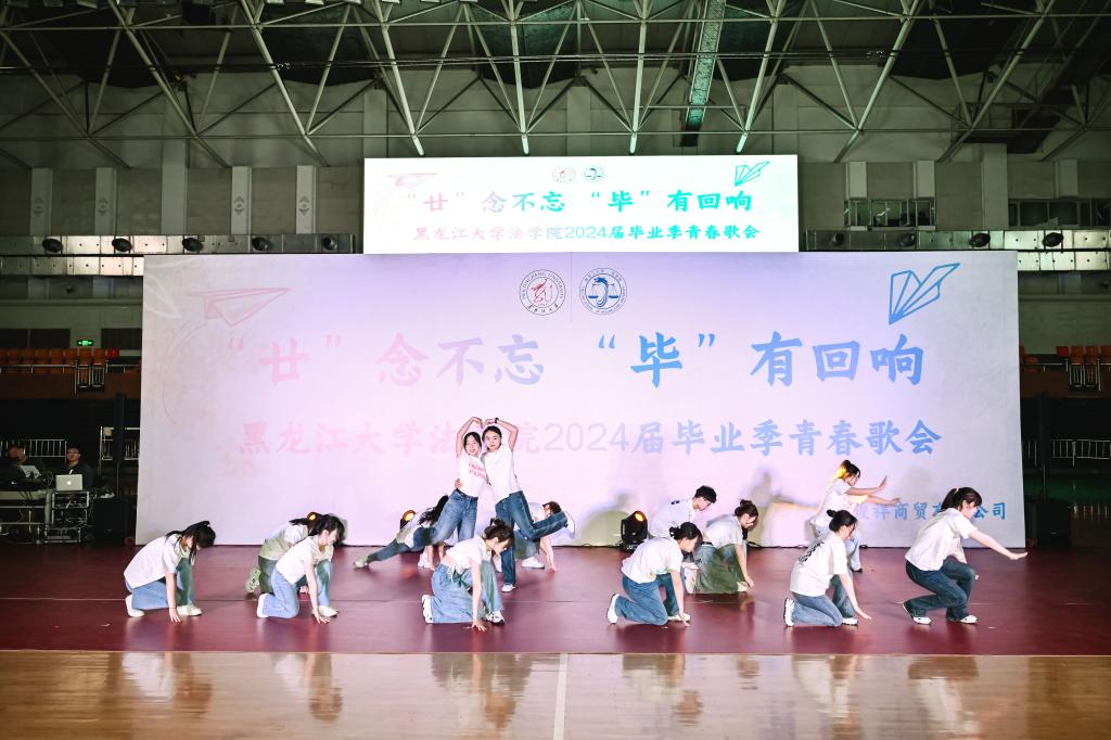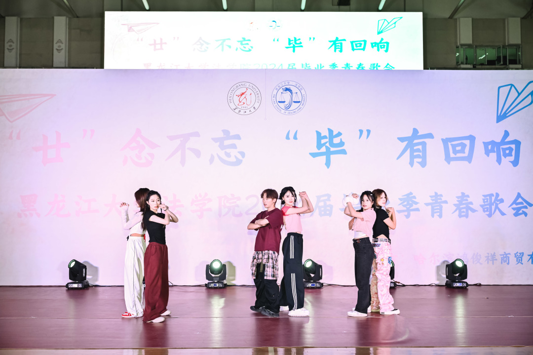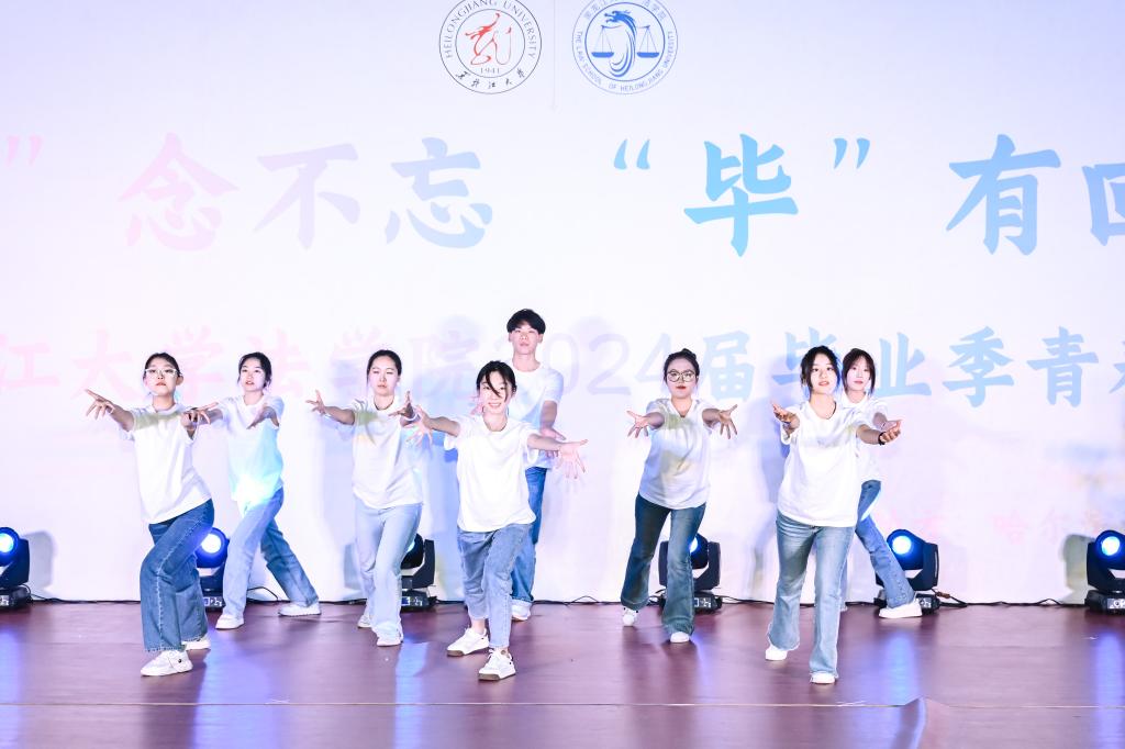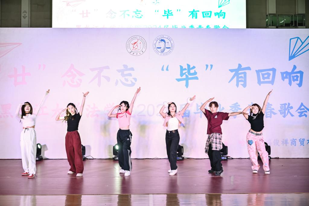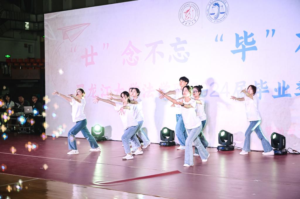 欢笑,是青春的主场;绽放,伊人风华模样。随着动感的节奏,邱锶雨、周俊颜等16位青春舞者跃上舞台,她们的舞步轻盈而有力,带动了全场的气氛,仿佛在告诉我们:青春就是要尽情舞动,不留遗憾。毕业的法学学子,在未来,我们仍要勇敢绽放,不负青春不负己!