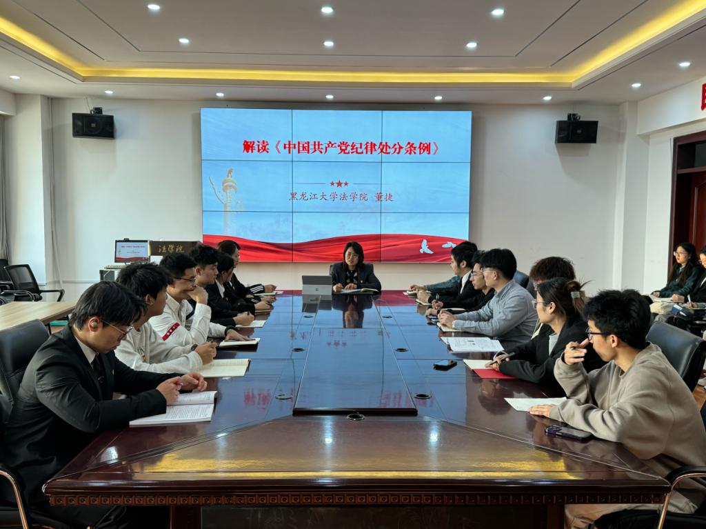 党委副书记董捷围绕新修订的《中国共产党纪律处分条例》就重要意义、重点内容、具体要求等方面进行详细解读。她强调,全体党员要进一步增强纪律意识,把党章党规党纪刻印在心上,形成尊崇党章、遵守党纪的良好习惯,营造学纪、知纪、明纪、守纪的浓厚氛围。各年级预备党员要坚持以身作则,带头遵守纪律、执行纪律,切实将党的纪律规矩内化于心、外化于行。