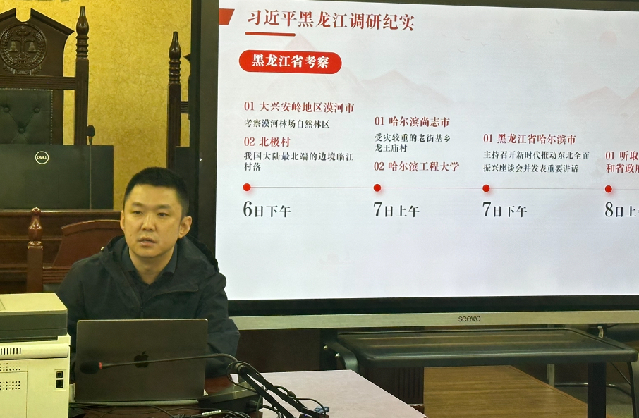 2022级学生党支部书记王业超以围绕习近平总书记视察黑龙江省期间的重要讲话重要指示精神进行授课,以总书记在东北全面振兴座谈会的重要讲话、重要指示精神为着力点,带领学生进一步感悟思想伟力,汲取奋进动力。并且要求全体预备党员要把坚持学习贯彻习近平总书记重要讲话重要指示精神与学习贯彻习近平新时代中国特色社会主义思想相结合。
