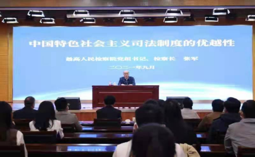 专题报告从“世界上有完全相同的司法制度吗?”“中国特色社会主义司法制度好在哪?”“中国特色社会主义司法制度的巨大成功给我们哪些启示?”“中国特色社会主义司法制度如何进一步健全发展完善”四个方面展开,张军检察长就如何深入学习贯彻习近平总书记全面依法治国新理念新思想新战略、深刻理解和认识中国特色社会主义司法制度的优越性进行了深入浅出地讲解。