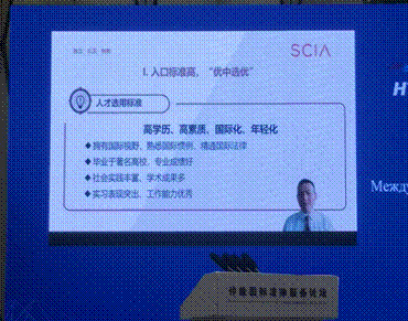 黄郭勇处长在《特区仲裁国际化发展与人才培养》的报告中,介绍了深圳国际仲裁院的状况,认为该院的国际化主要体现在治理机构、仲裁员结构、仲裁裁决执行、仲裁规则、业务结构、仲裁合作平台等六个方面。就该院的人才培养总结了四个特点:入口标准高、管理机制灵活、绩效导向明确、薪酬体系科学。通过积极举办模拟仲裁庭比赛,培养年轻的仲裁人才。