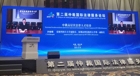 司法厅主办的“仲裁国际法律服务论坛”系中俄博览会(哈洽会)常设论坛。2021年6月15日,第二届仲裁国际法律服务论坛在哈尔滨市华旗礼堂隆重召开。黑龙江大学校长付宏刚教授出席仲裁国际法律服务论坛开幕式。