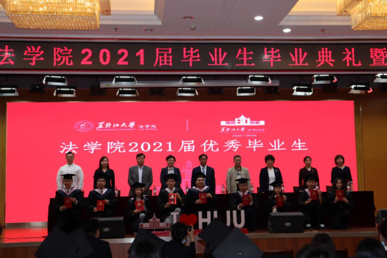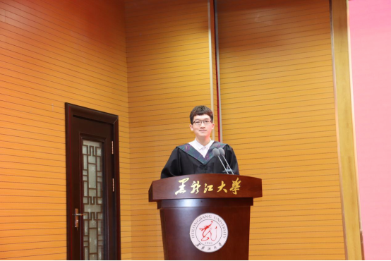 哈书菊院长在典礼上致辞。她嘱咐毕业生们,作为一名法律人,永远都要敬畏法律,守住底线,并且要学会爱,懂担当,要有梦想,有自信,有实干,用法治引领前进的方向,脚踏实地,永不言弃,加速助力中国法治梦想的实现。同时,哈书菊院长也告诫毕业生们,制度面前没有特权,制度约束没有例外,遵守诚信原则,崇尚契约精神。忠于公平正义是黑大法律人的品格,望毕业生谨记。