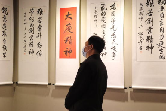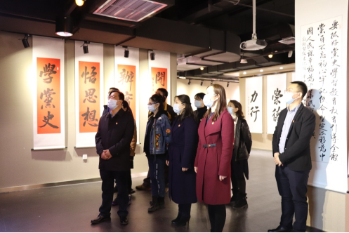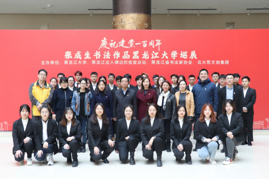 院领导、部分教师代表、各院级学生组织负责人、部分学生代表在学校博物馆参观了由黑龙江大学、黑龙江省出入境边防检查总站、黑龙江省书法家协会、北大荒文创集团联合举办的“庆祝建党一百周年——张成生书法作品黑龙江大学巡展”。