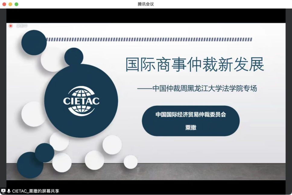 院长哈书菊教授主持,中国国际经济贸易仲裁委员会党委书记兼副秘书长徐延波、黑龙江省贸促会副会长于雪松以及黑龙江大学副校长严明出席并分别致辞,黑龙江大学研究生院院长罗跃军教授出席会议,新葡京网上赌场