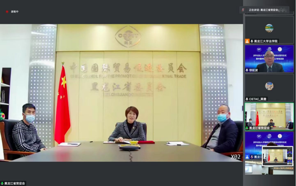 黑龙江省贸促会副会长于雪松在致辞中对黑龙江大学培养法律人才、俄语人才和对外关系人才等方面的独特优势和斐然贡献给予高度肯定。她表示,黑龙江省积极参与“一带一路”建设,逐渐成为我国向北开放和对俄合作的重要窗口。加强涉外法治人才培养,对于健全我省全方位的公共法律服务体系,推进国际化法治化营商环境建设,助力企业更好开拓国际市场,加快融入国内国际双循环的新发展格局,具有非常重要的意义。下一步,三方将携手并进,为服务国家涉外法治工作战略布局,助力龙江经济更好更快发展贡献更大力量。