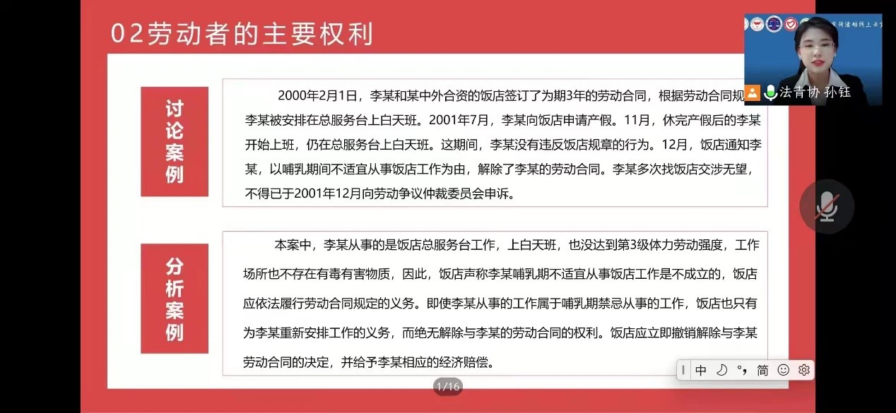 青年志愿者协会主办、五院联合共同举办的线上云宣讲“普及劳动法律知识,维护群众合法权益”普法宣传活动取得了圆满成功。
