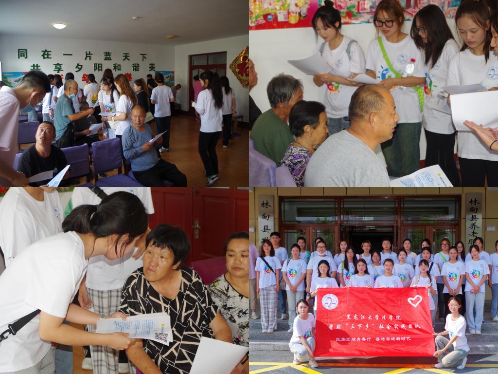 本次“三下乡”活动以“民族团结青春行,普法奋进新时代”为主题,围绕民族团结进步创建、理论普及宣讲、乡村民情调研、红色基因传承、法律咨询援助等5个方面深入民族村开展社会实践。实践团队以铸牢中华民族共同体意识为主线,依托法学专业特色,以普法“五进”为载体,组建了由专业教师指导、以学生为主体共计30人的实践团队,走进大庆市林甸县四季青镇、林甸县天星广场、林甸县西南社区、林甸县敬老院、林甸县企业,采取“零距离”“面对面”“点对点”的形式,推动此次“三下乡”社会实践的专业化、多元化和精细化发展。